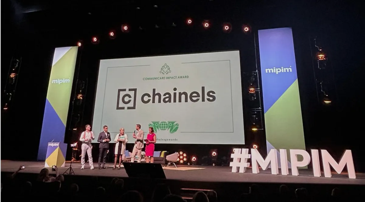 [Cannes, 12/03/24] – Chainels is proud to announce its victory at the Global ESG Awards, presented to our co-founder Sander Verseput this year at MIPIM. We're honored to have received the CommuniCare Impact Award, standing out among notable nominees including Aura Labs, Mapxus Technology, Mclimate, and PoiLabs.